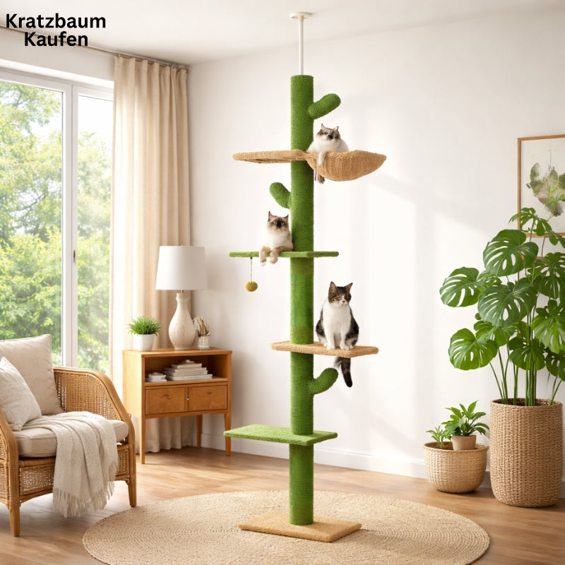 Biete deiner Katze den "CactusEscapade" Katzenbaum, eine elegante und multifunktionale Lösung zum Klettern, Spielen und Ausruhen in der Höhe. Dein pelziger Freund wird begeistert sein und deine Möbel bleiben verschont. 🐱✨