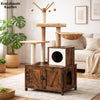 Bieten Sie Ihrer Katze einen gemütlichen und diskreten Platz mit diesem wunderschönen rustikalen Holz-Katzenbaum, der ein Katzenklo-Möbel für eine perfekte Harmonie in Ihrem Zuhause integriert.