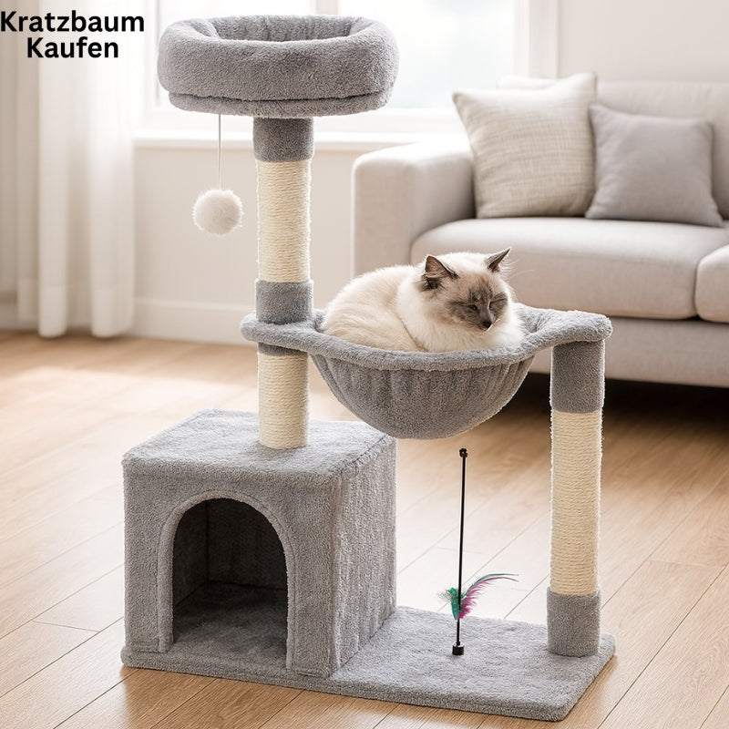 Biete deinem Stubentiger einen unvergleichlichen Spiel- und Entspannungsraum mit diesem Katzenbaum, der mit einer Hängematte ausgestattet ist. Sein elegantes und funktionales Design wird sich perfekt in dein Interieur einfügen und den natürlichen Bedürfnissen deines vierbeinigen Begleiters gerecht werden.
