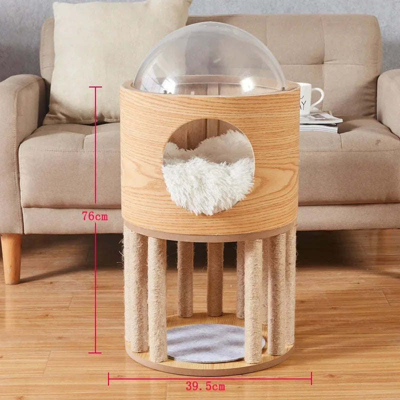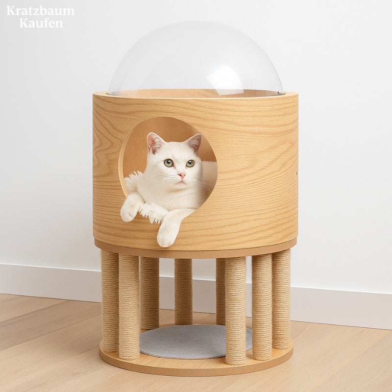 - 🌲 Material: Hochwertiges Holz, Sisalpfosten zum Kratzen, transparente Kunststoffkuppel.