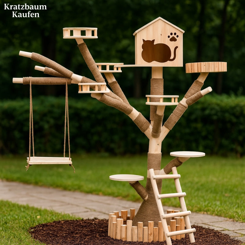 Verwandle deinen Garten in ein Katzenparadies mit dem Outdoor-Katzenbaum - Natur - Zubehör!