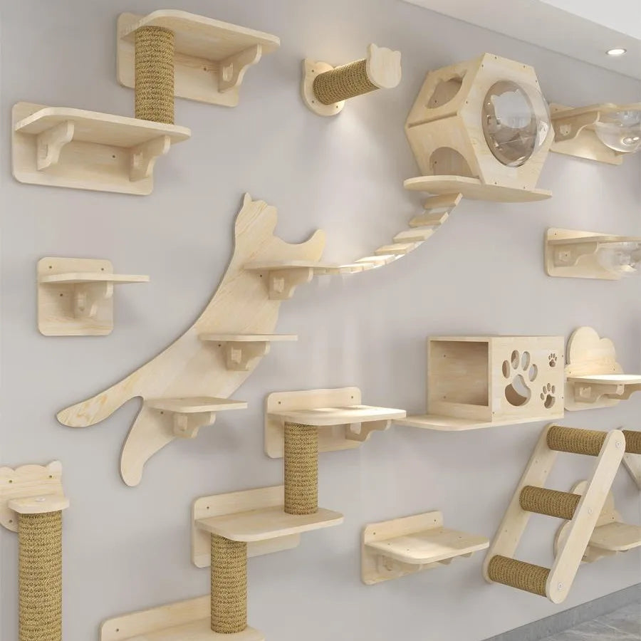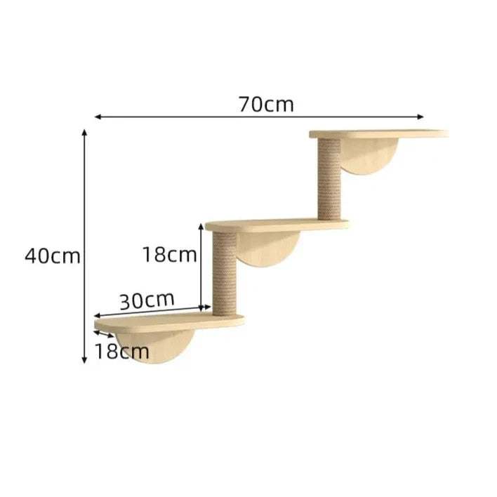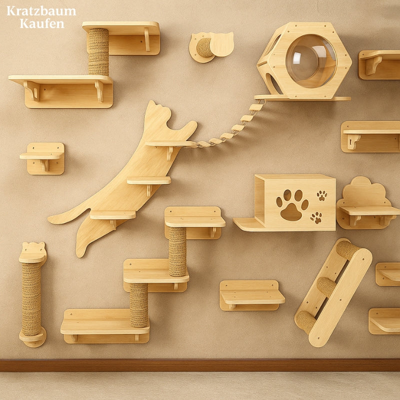 Verwandle deine Wand in einen Spielplatz für deinen felligen Freund mit diesem Wand-Katzenbaum aus Holz. Entworfen, um Unterhaltung und Sicherheit zu vereinen, wird er deiner Katze stundenlanges vertikales Abenteuer bieten.