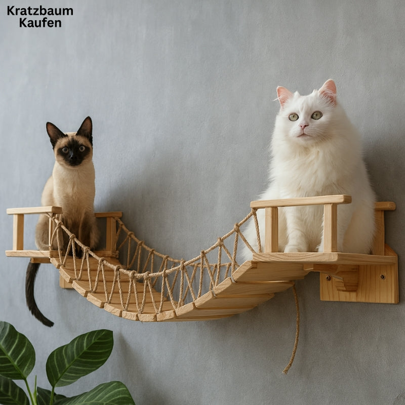 Biete deiner Katze einen Rückzugsort mit dem Wand-Katzenbaum aus Holz - Hängebrücke Kletterparadies
